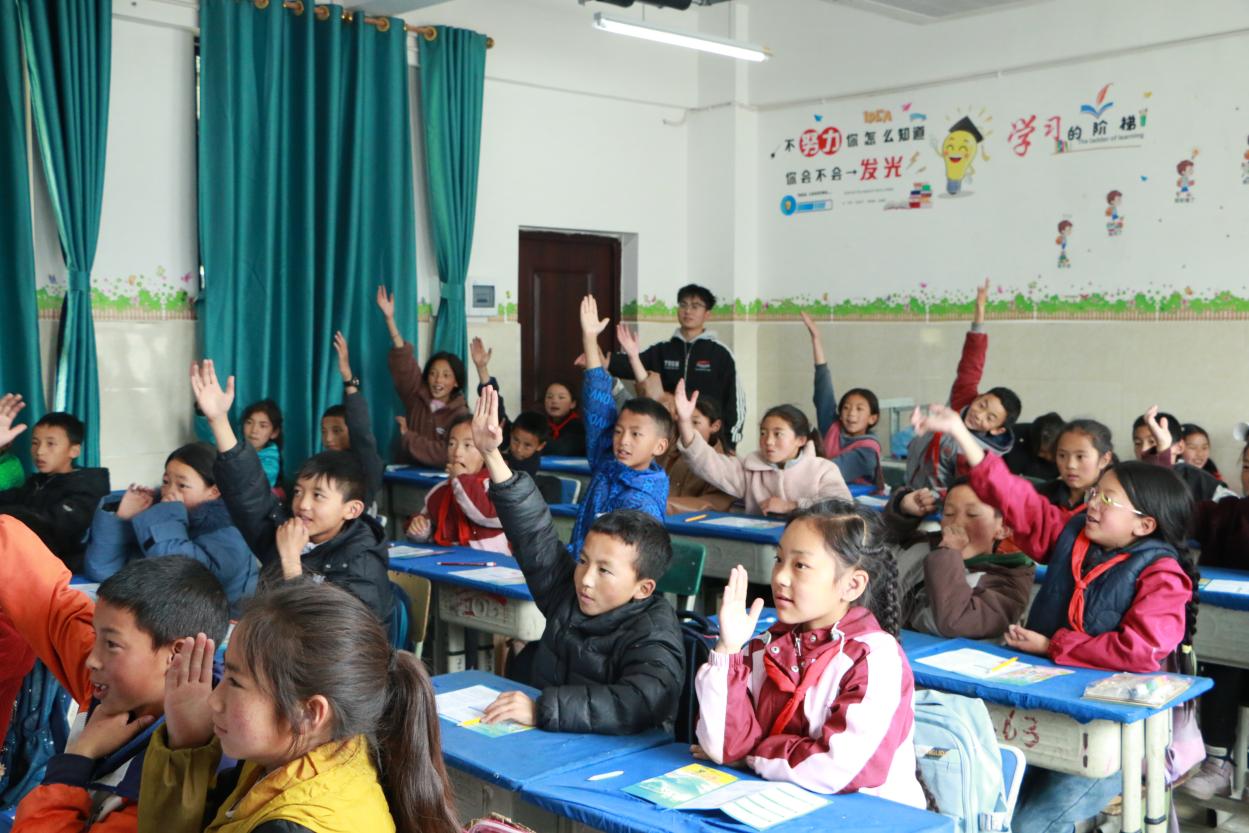 此外,团队还特别开设了一堂生动的爱国主义教育课,成员们结合泸定桥的红色记忆,讲述革命先辈的英勇事迹,激发了孩子们的爱国热情,让孩子们在幼小的心灵中种下了爱国的种子。在课堂上,孩子们热情参加、踊跃发言,现场气氛十分活跃,他们的眼神中透露出对知识的渴望和对祖国的热爱,这让小组成员们深受触动,更加坚定了为孩子们带来更多知识和关爱的决心。小组成员还精心准备了一些小礼物,奖励给热情参加互动的孩子们,鼓励他们好好学习、茁壮成长。