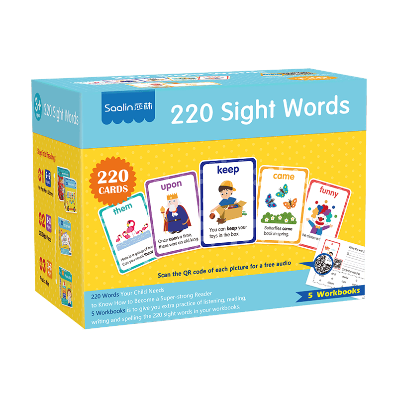 莎林英语启蒙220个高频词闪卡通过现代科技与传统学习结合,提高儿童学习兴趣。设计美观且易学,鼓励家长与孩子一同学习,增进亲密关系。